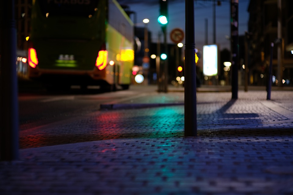After a few minutes I decided to get out and stretch my legs and have a look around. The terminal was white stone with curved edges instead of corners and looked like the buildings I’d seen in old movies from the 1930s. We were under a stone canopy where there was room for about three busses if they parked side-by-side. I wandered out front. There was an old red sign with “BUS” written in red neon. I looked out and saw the neon reflected on the wet pavement. I looked down the street. I could see some tall buildings, taller than I’d ever seen. A couple of them tapered off into spires. I’d been in New York, this wasn’t New York. About a block away was a tall, grey building with no lit windows but in the reflected light I could see what looked like graffiti carved on the building’s wall, in a language I’d never seen before. Was it a church? I turned completely around; some of the buildings were cornered at odd angles. I looked down at the ground.