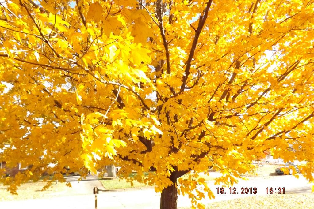 Years afterward I went and looked for the tree. It was early October and the leaves had hit that point where they changed overnight. In this case, the tree had fanned out into a bright yellow and orange, like a ginger peacock.