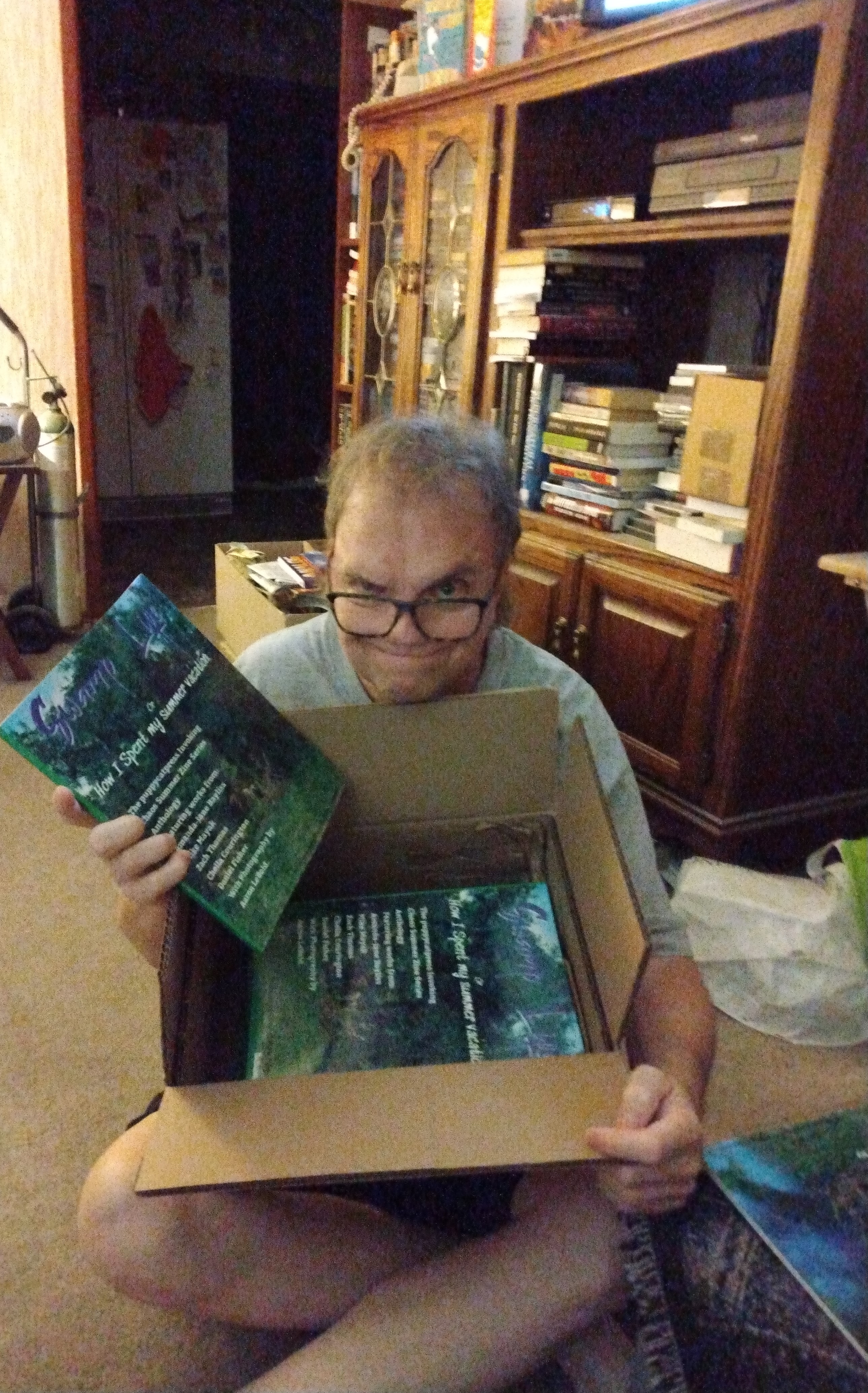 Got the copies of the anthology “Swamp Life” reprinting my (as “Mike Mayak”) story “Summer Skies.” I look happy! It can be ordered from Puppycat Press. https://puppycatpress.com/
