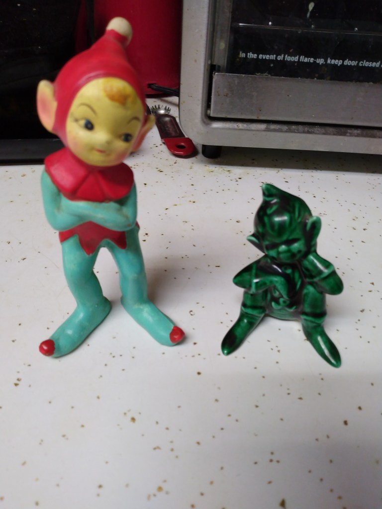 I walked up to the back door of my house, kicked some loose dirt off the shovel and propped the shovel up just inside the backdoor. I went into the house and placed the two objects on my mantelpiece. One was the figure of an elf; blue elfin coat, red shirt and pointed hat, green lapels and shoes, pink face and yellow hair.
