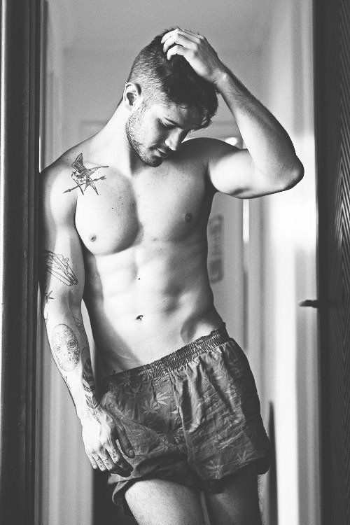 Luke stood in the doorway running a hand through the short hair. He looked down and flexed the right bicep, staring at the tattoos.