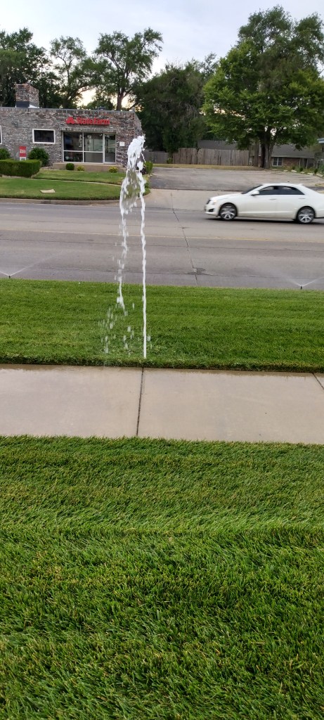 Ohmley had stepped back from the metal pole as he was staring upward, presumably to get a better view, but his and our distance from the rod and winch was actually very fortunate as in the next instant the cloud let out with a roar and emitted a swirl of rain which seemed directed at the rod. In another second there was a blue white streak of lightning and a brittle clap of thunder as the bolt hit the rod and we were thrown back away from it by a burst of force. And then the ground rumbled and a tower of water erupted from underneath the rod, leaving the small area underneath a small pond the size of a swimming pool.