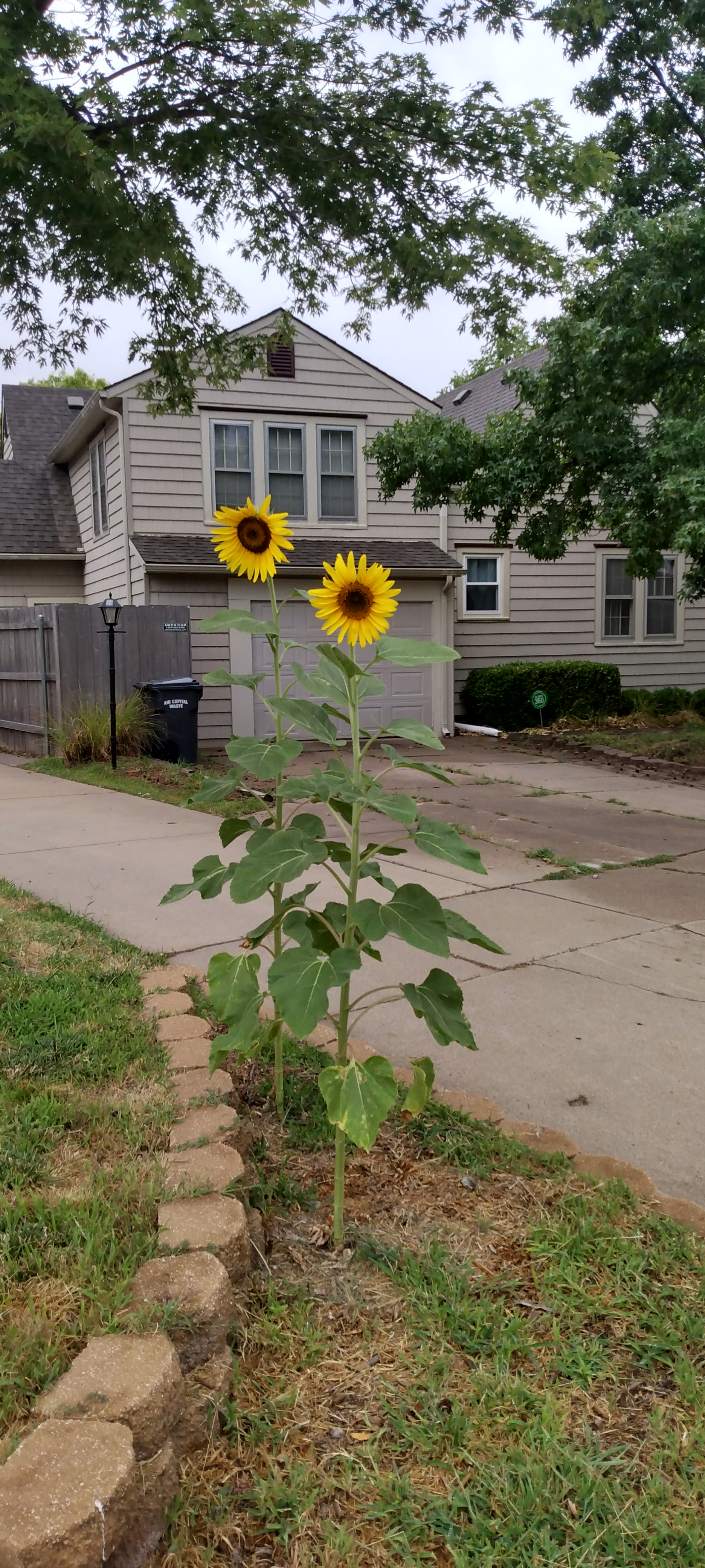 The cloud moved from in front of the sun, spreading light and warmth on the suburban driveway. At the end of the drive stood the two tall sunflowers. The slightly taller of the two sent a thought to the slightly smaller one.
