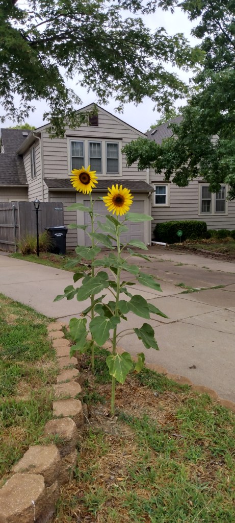 “Nothing else to do,” the smaller sunflower said.