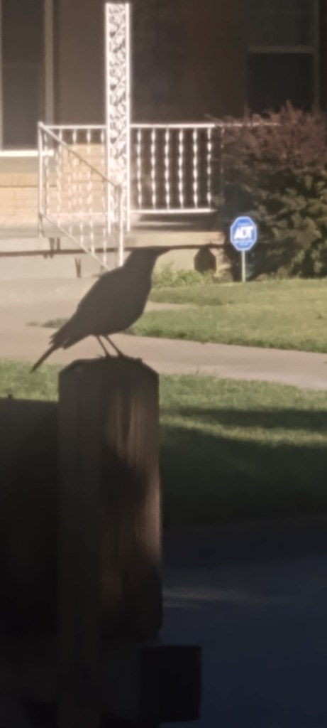 “Off the ground, off the ground, there are cats on the ground,” the bird thought, eyeing the mailbox at the end of the drive. With an effort (he’d never really flown before) he took off and arced through the air, flying haphazardly like the sixteen-year-old-kid that he was, landing on top of the wooden post the mailbox was attached to.