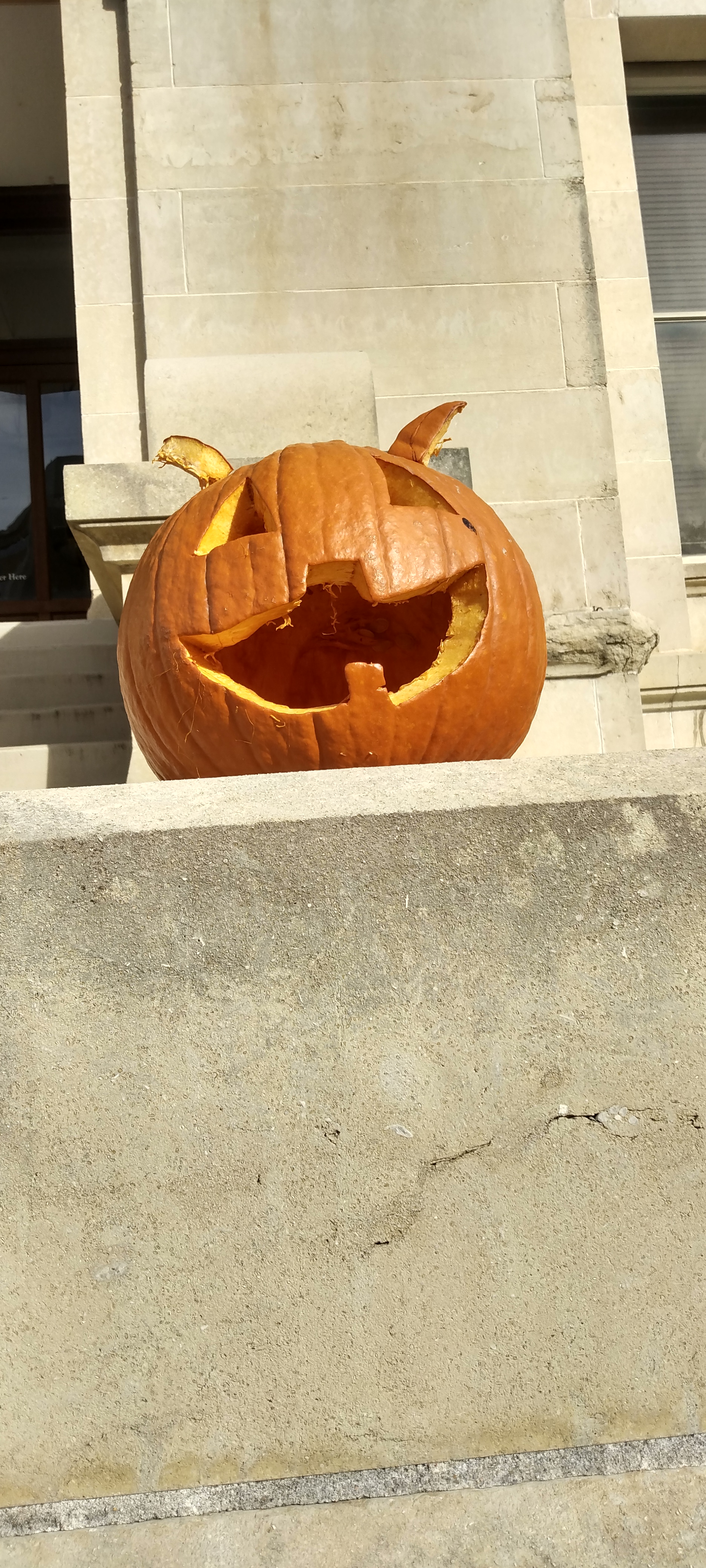 The two young men laughed as they headed up the porch steps past the glowing pumpkin.