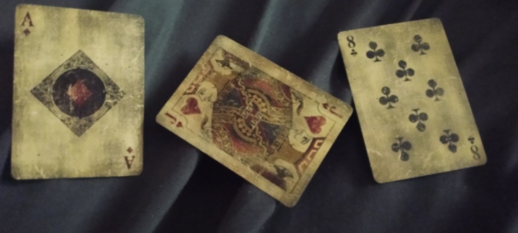 Here’s how it works: the first Monday of every month I draw three cards; a heart, a diamond and a club. These correspond to a list naming a genre, a setting and an object that must appear in the story. Participants write up a flash fiction story, 1,000 words or less, post it to their website and link it here in the comments. I’ll post the results (and hopefully have one of my own written!) the week of March 13th, 2023.