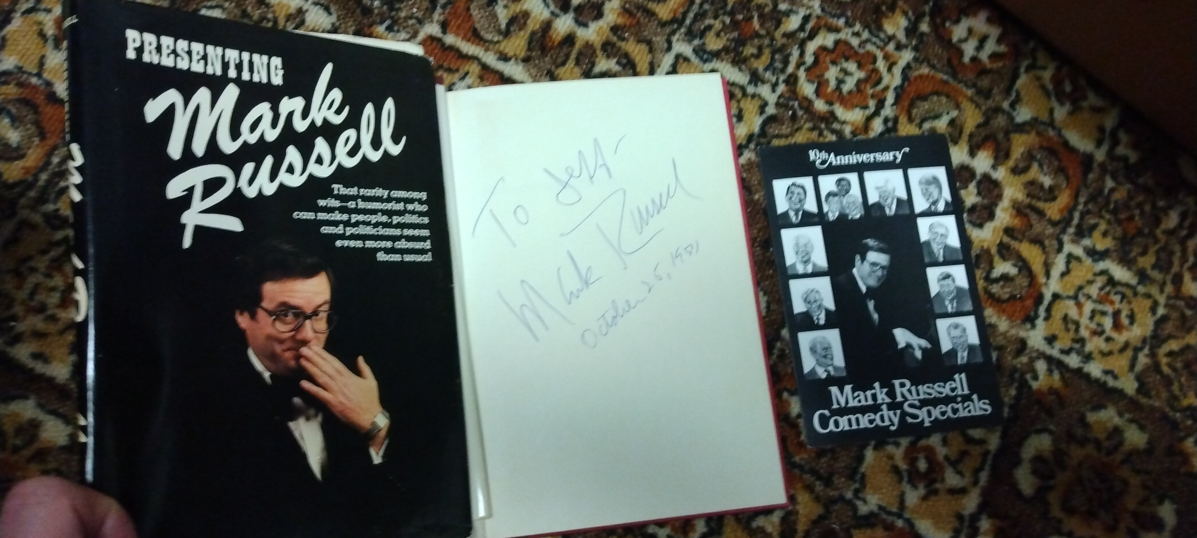 I met him once after he did a show here in Wichita and got his autograph on his book of comedic essays. I patterned my own topical comedy act during my brief performing career after his own. I was no Mark Russell.