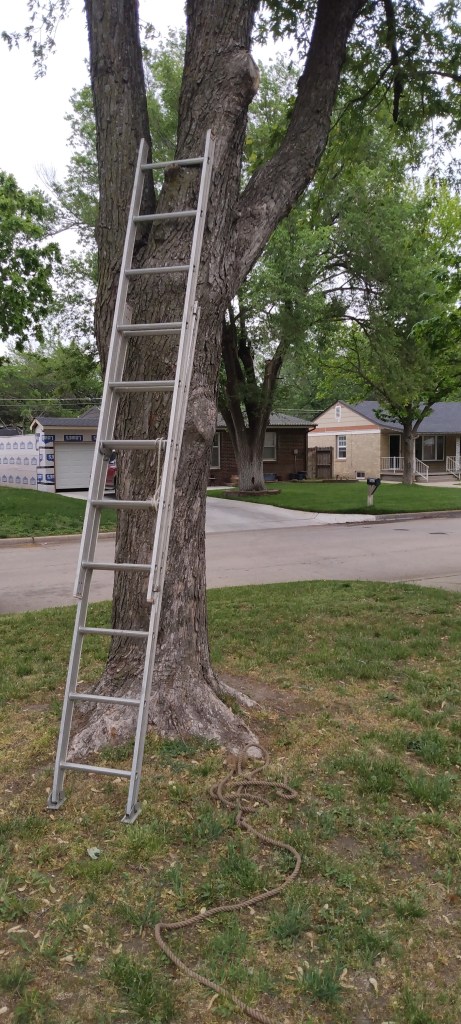 “Run!” yelled the squirrels. “The dog has learned how to use the ladder!”