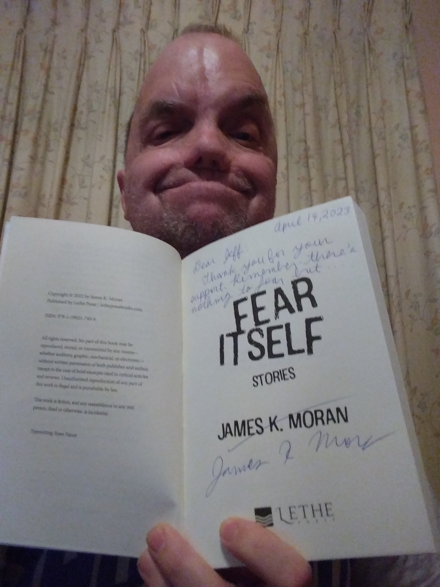 I’m also doing a Goodreads/Amazon review of James Moran’s collection “Fear Itself.” I’d ordered a signed copy but after Darryl died he contacted me and said since I was having such a crappy year he would send me the copy for nothing. And he did!