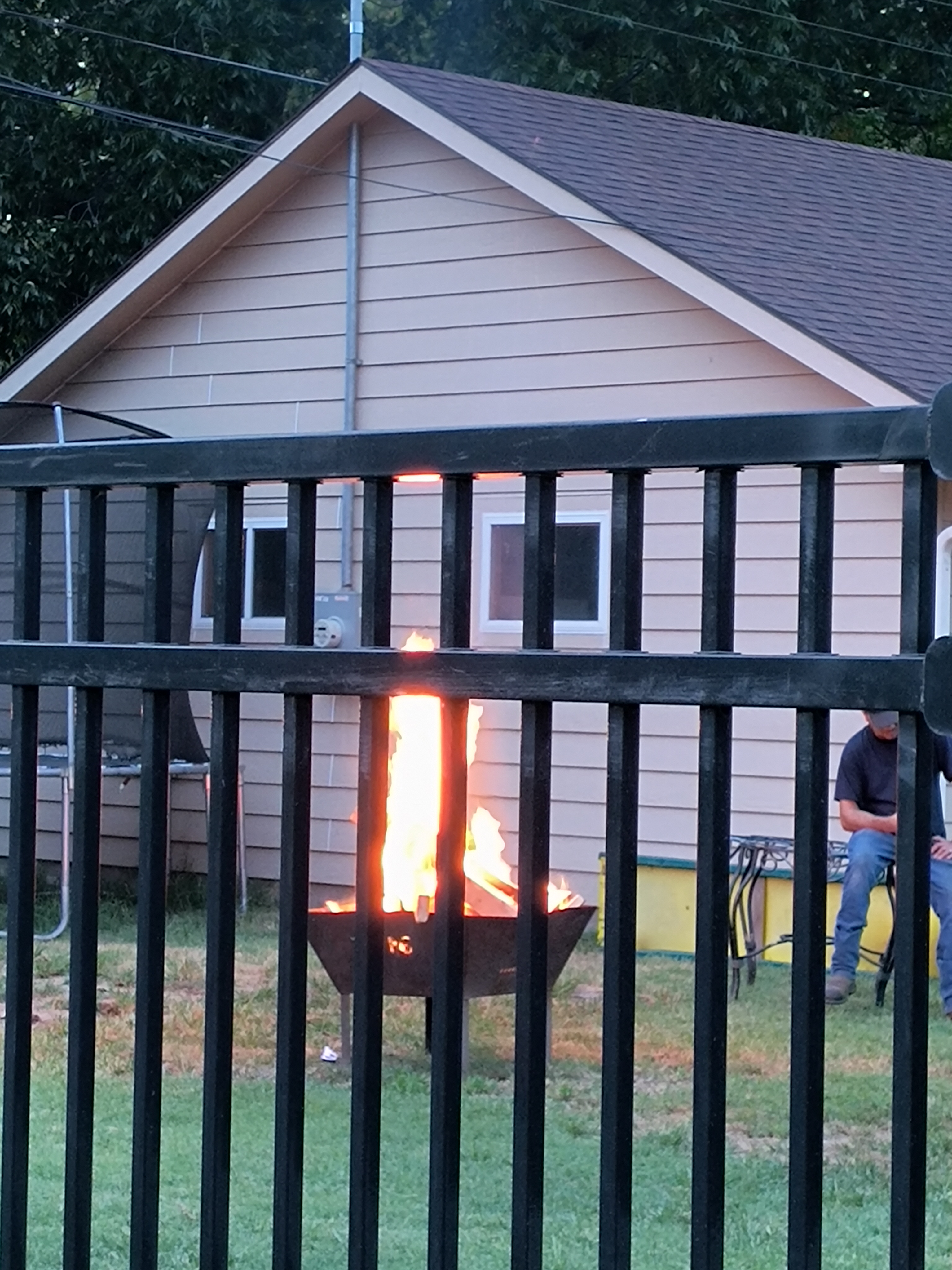 Stephen smiled and glanced around. Over the fence he could see the other trees and houses in the neighborhood. He glanced through the kitchen window; some of the family were piling buns, and hot dogs on plates and grabbing ketchup and mustard. They’d have to get the flames to calm down; they were way too high.