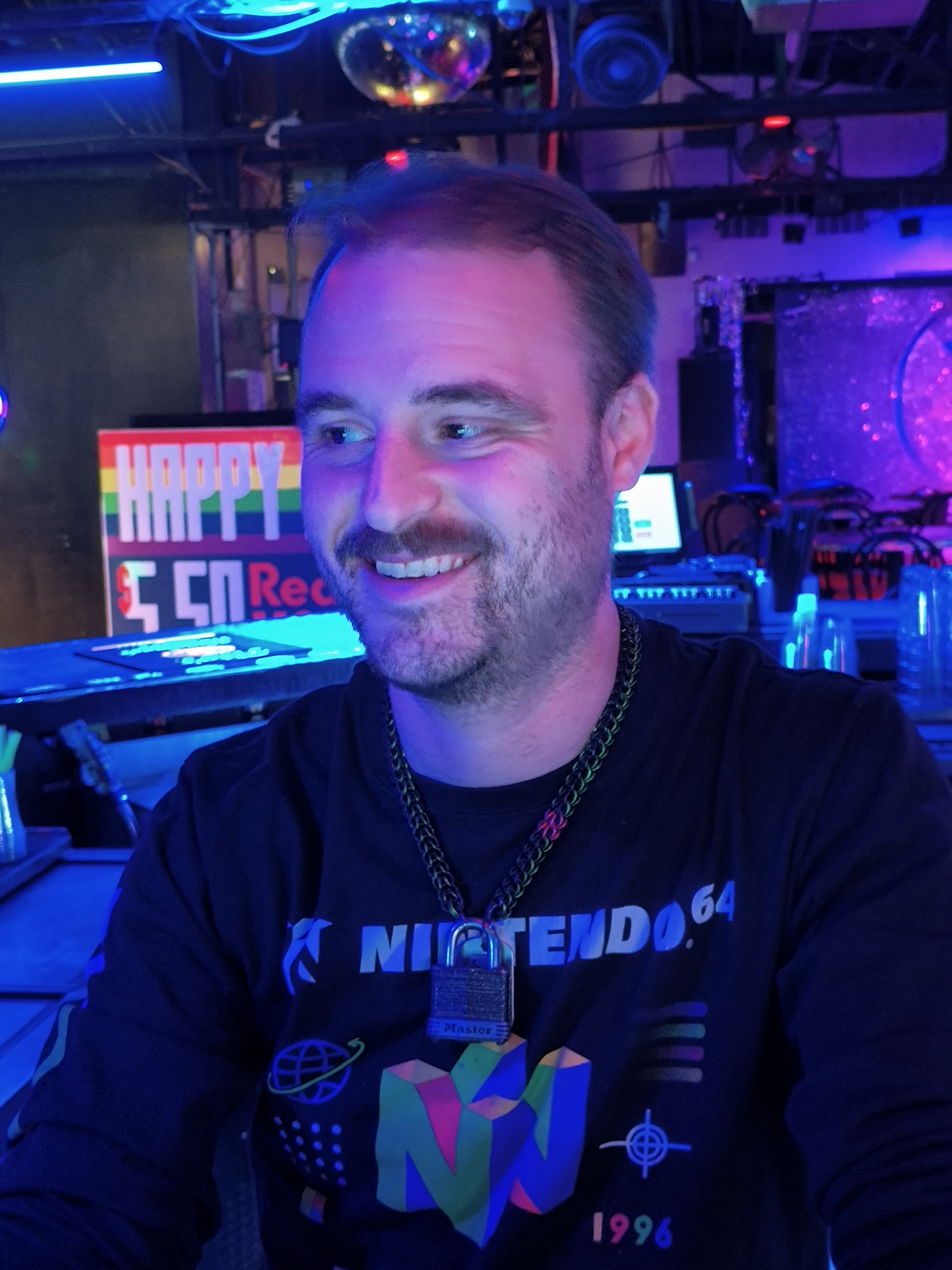 Johnson is seen above at his night job, tending bar at XY Bar in Old Town.