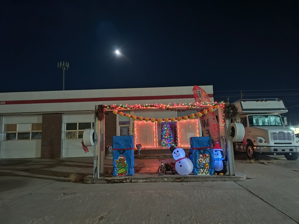 Ahead a few blocks was the old gas station. Lance pulled the car into the lot. The old pumps weren’t there but the poles holding the towel dispenser and air hose were still there. There was a string of lights between them. There was a little Christmas tree lit up in the front window, and a plastic snowman standing cheerily to one side. A big Santa’s sleigh was parked in front of the old garage doors and a big cement block I remembered was wrapped like a Christmas package. And there were twinkling lights around the windows and on top of the little building.