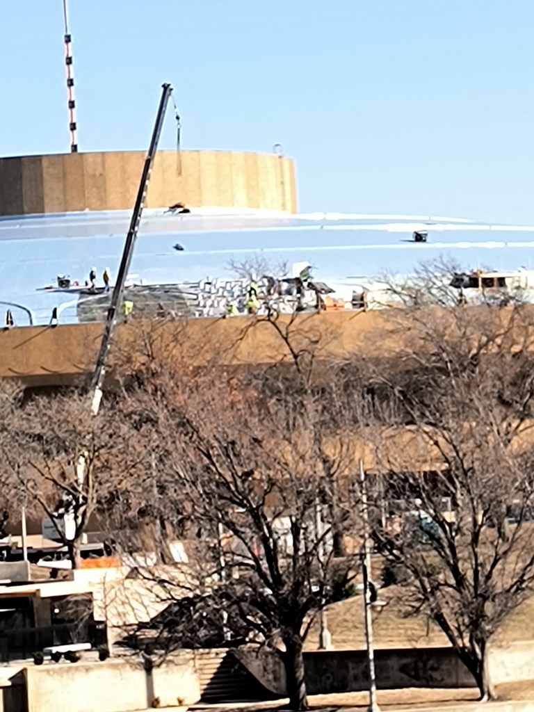 “You can see a lot from up here,” I said. It wasn’t my first day on the job, but I’d never been on top of the Community Facility Building. Some people called it “The Big Flying Saucer,” because it was round, had a domed roof and was about 200,000 square feet. Movable walls inside and theaters made it perfect for conventions and concerts. It had been state-of-the-art when it had been built about fifty-six years ago. But now the state-of-the-art needed repair, especially on the roof and I was part of the construction crew putting in new tiles.