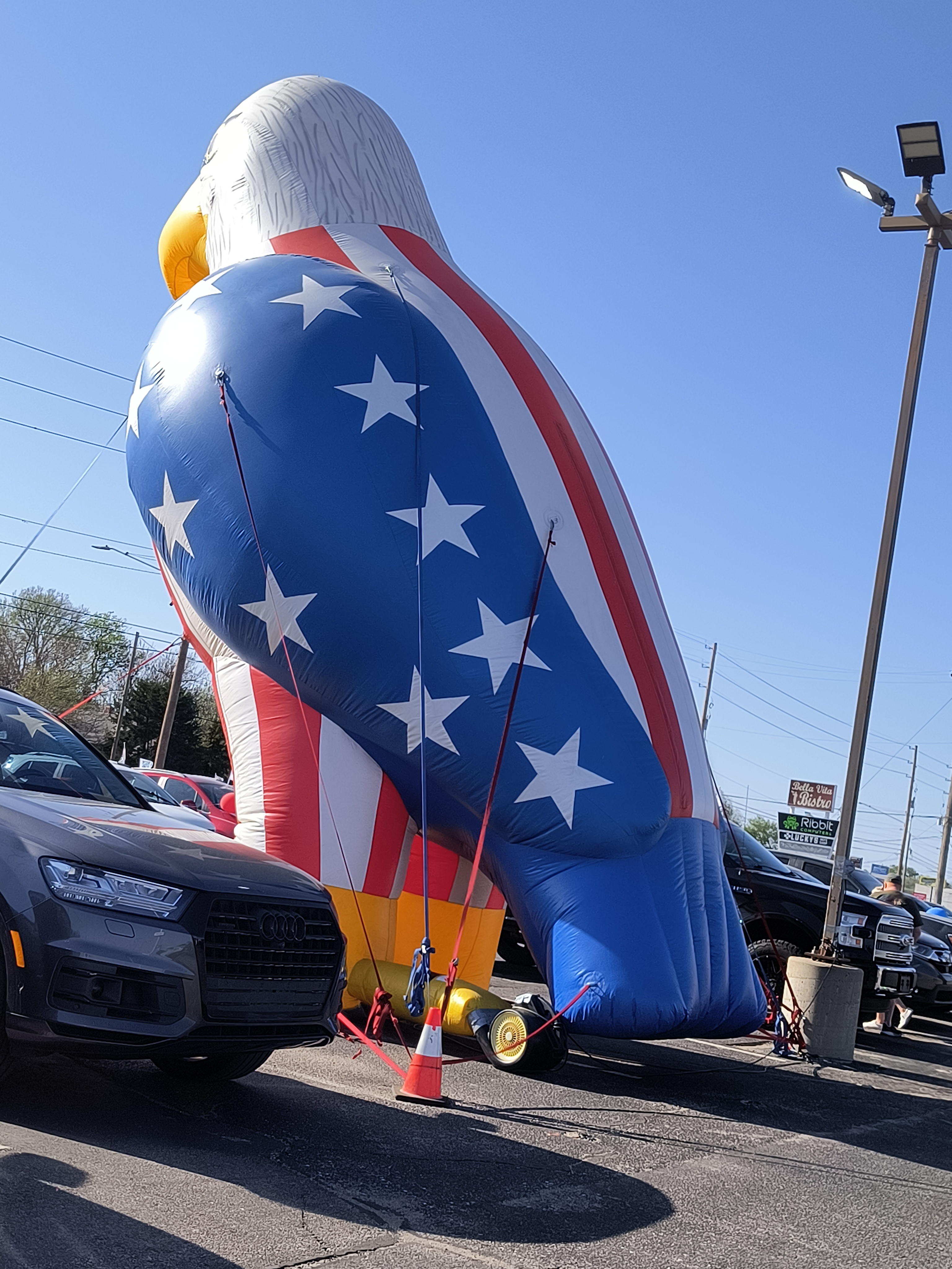 The Eagle was a big balloon; covered in stars and stripes, staring out onto Fifth Street with a fierce glare. Shaped, of course, like an Eagle.