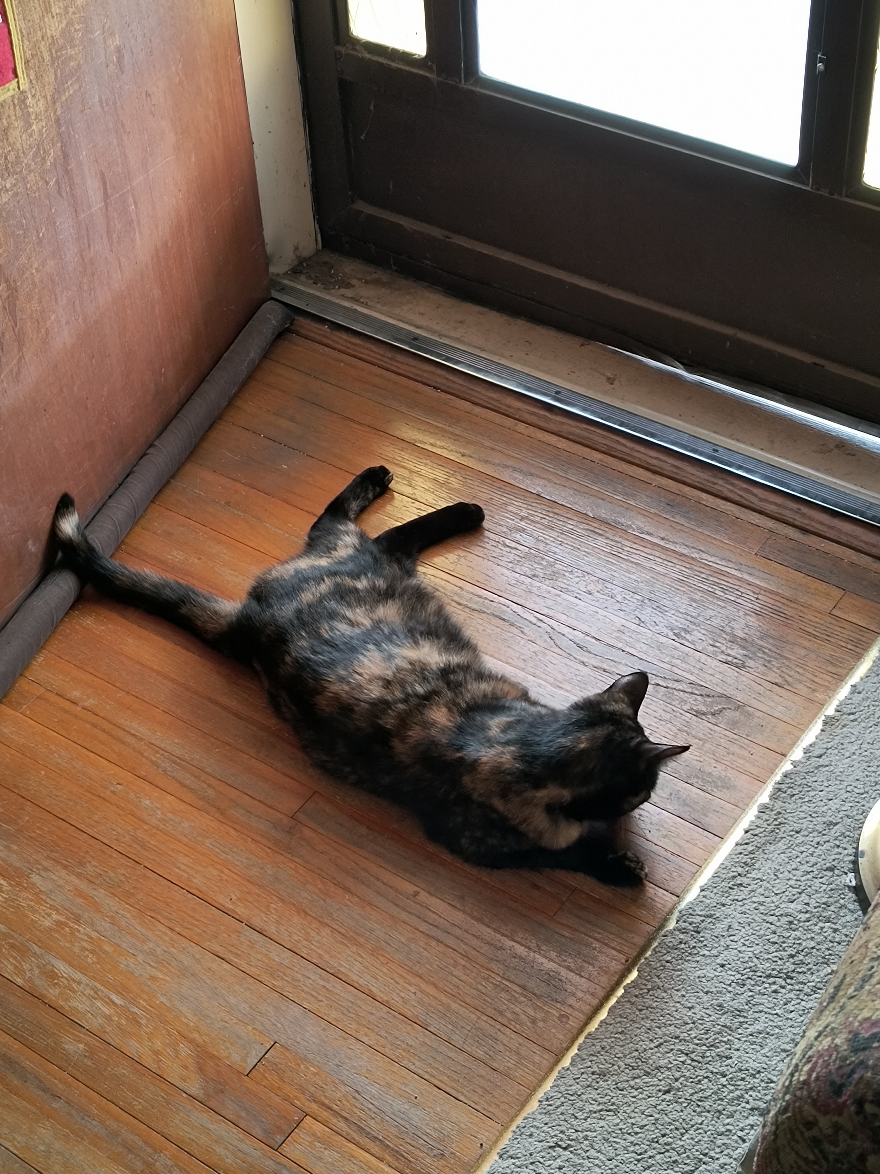 The Tortoiseshell cat was sunning herself on the wooden floor by the front door when Petro walked up and set his overnight bag down.