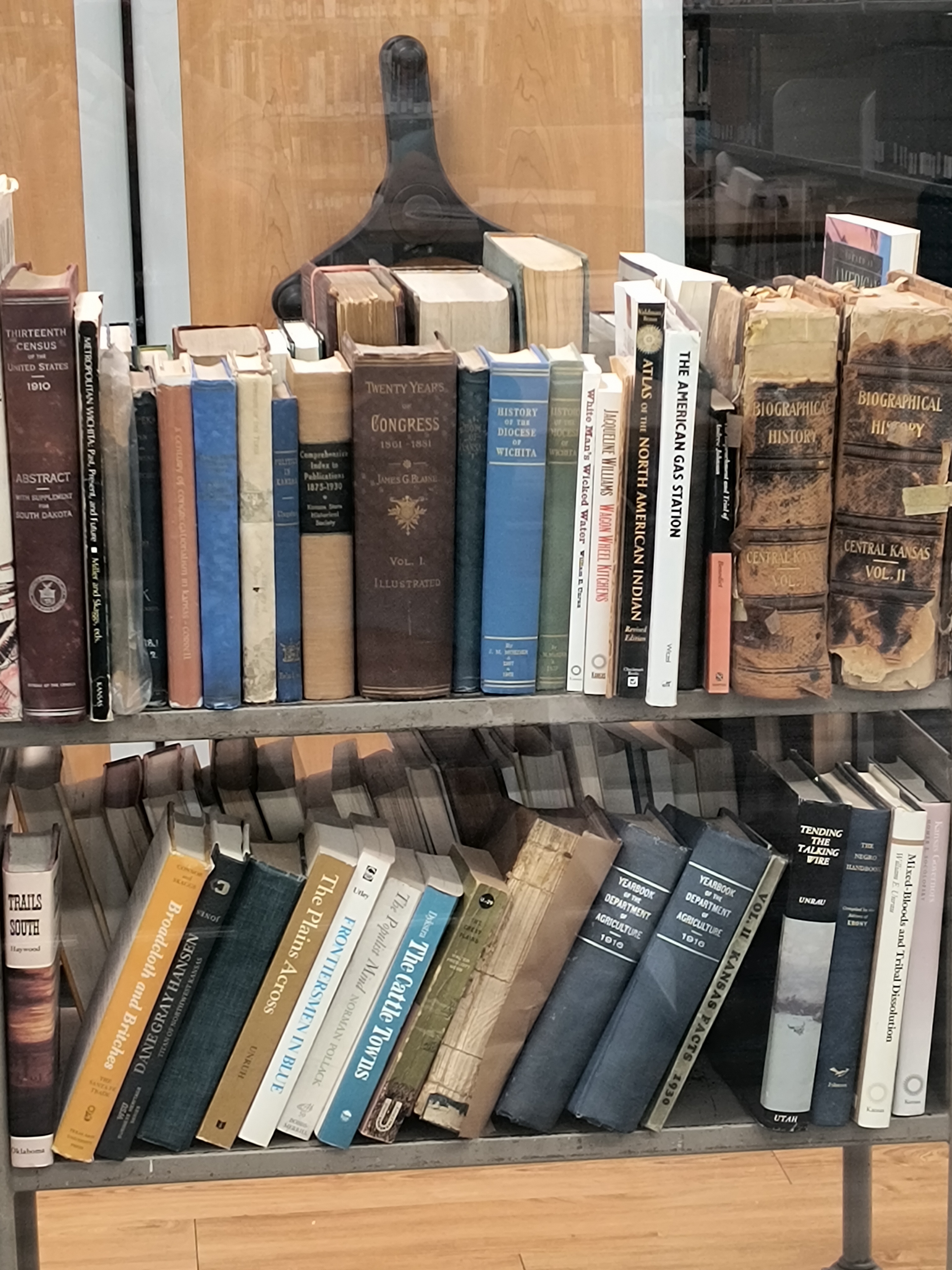 Hal turned. Behind him was the glass partition separating the rare books room from the research area. On the glass was a sign identifying it as SECURED STORAGE. Taped beneath it was another sign reading DEFINITELY NO FOOD OR DRINK. Below that, in front of a row of bookshelves was a cart with books, doubtless to be shelved. On the top shelf of the cart, right next to a brown, crumbling book labeled “Biographical History, Central Kansas, Volume II” was an almost identical crumbling brown book with a name in archaic characters on the spine in a faded color that hurt the eyes to stare at.