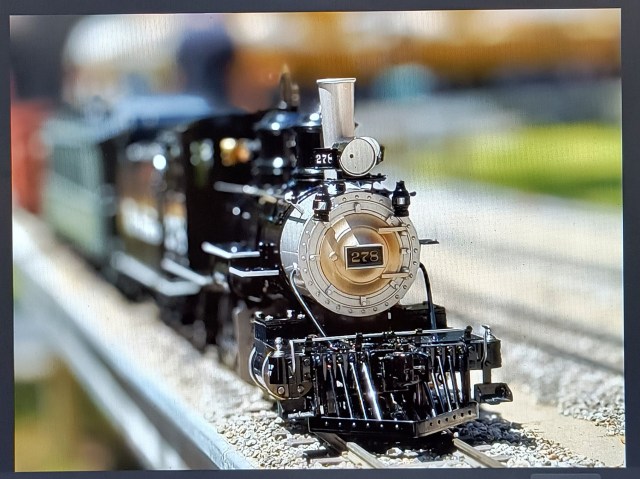 He was proportioned perfectly to fit in the little passenger car or even sit down on the seats inside. He was dressed like a guy playing the town banker in an old cowboy movie. Grey suit, green vest, grey hat. Not a cowboy hat.