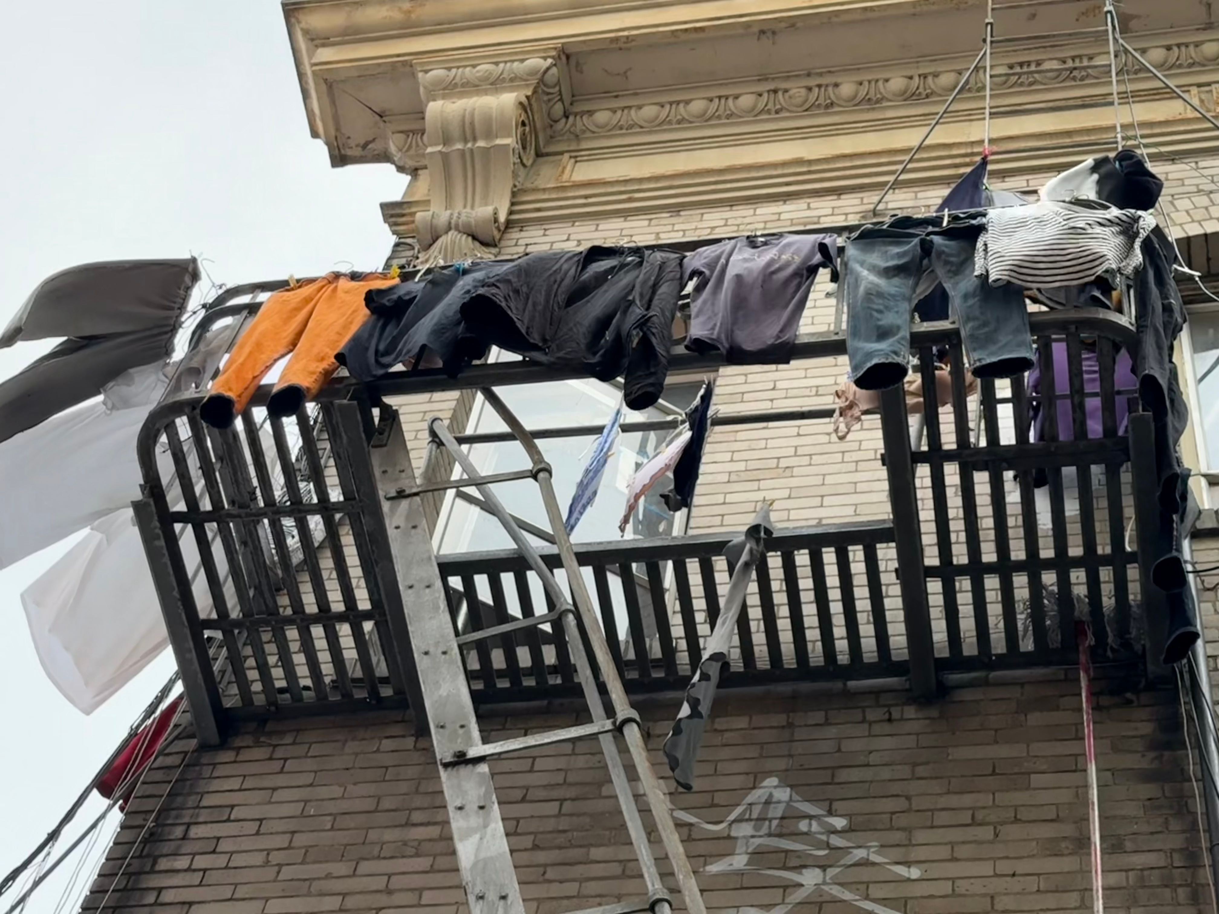 They filmed that scene right here,” Anthony Lee said, staring up at the fire escape a floor or so up. Grey metal draped with blue jeans, shirts and baby clothes. “Twenty-nine years ago. Seen it in reruns at least two dozen times.”