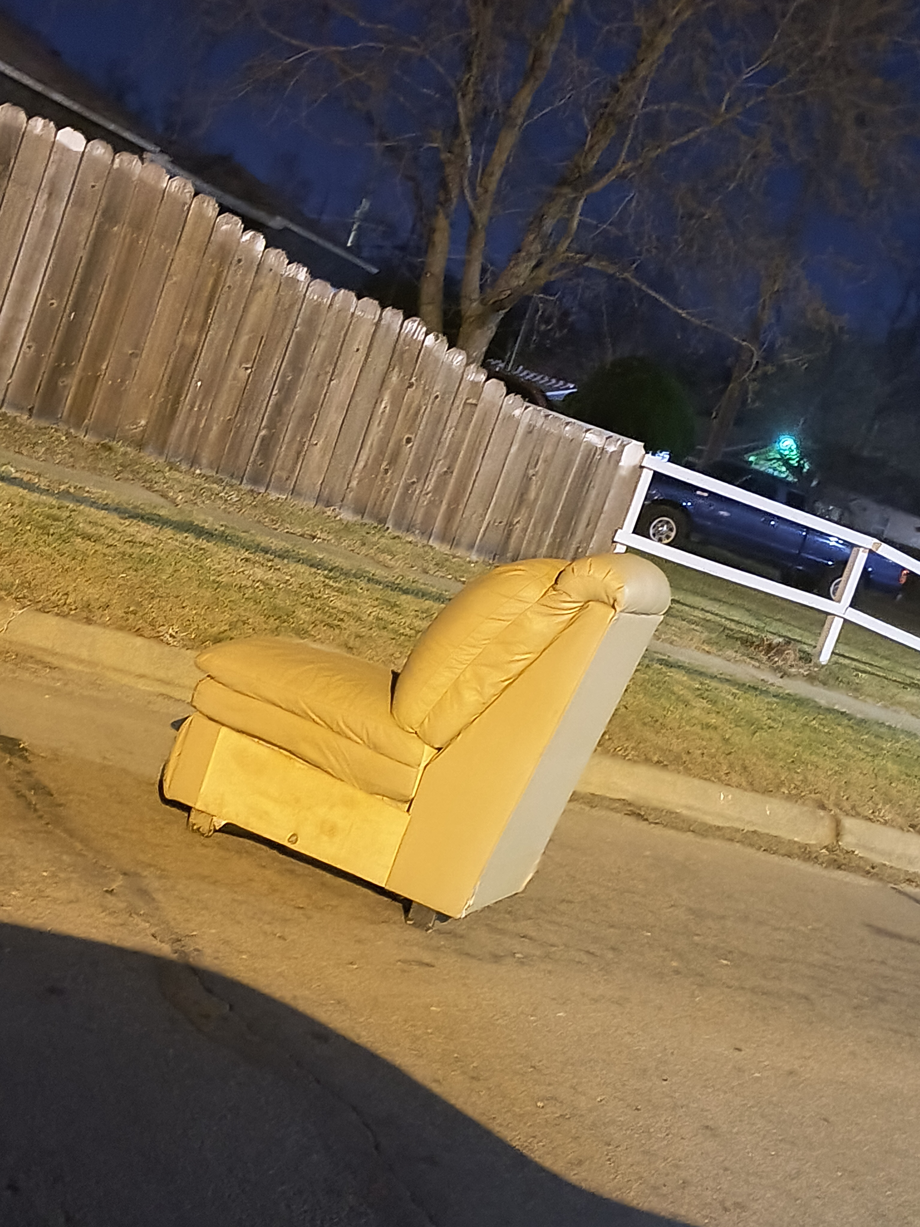 “Uh, yeah,” Margolis said. “I ran out to the garage and I had this old chair out there and my car’s in the shop and I needed to sit down and I had to get away from the…well, I puled the garage door shut and pushed this out into the street and called you on my cellphone and…and…”