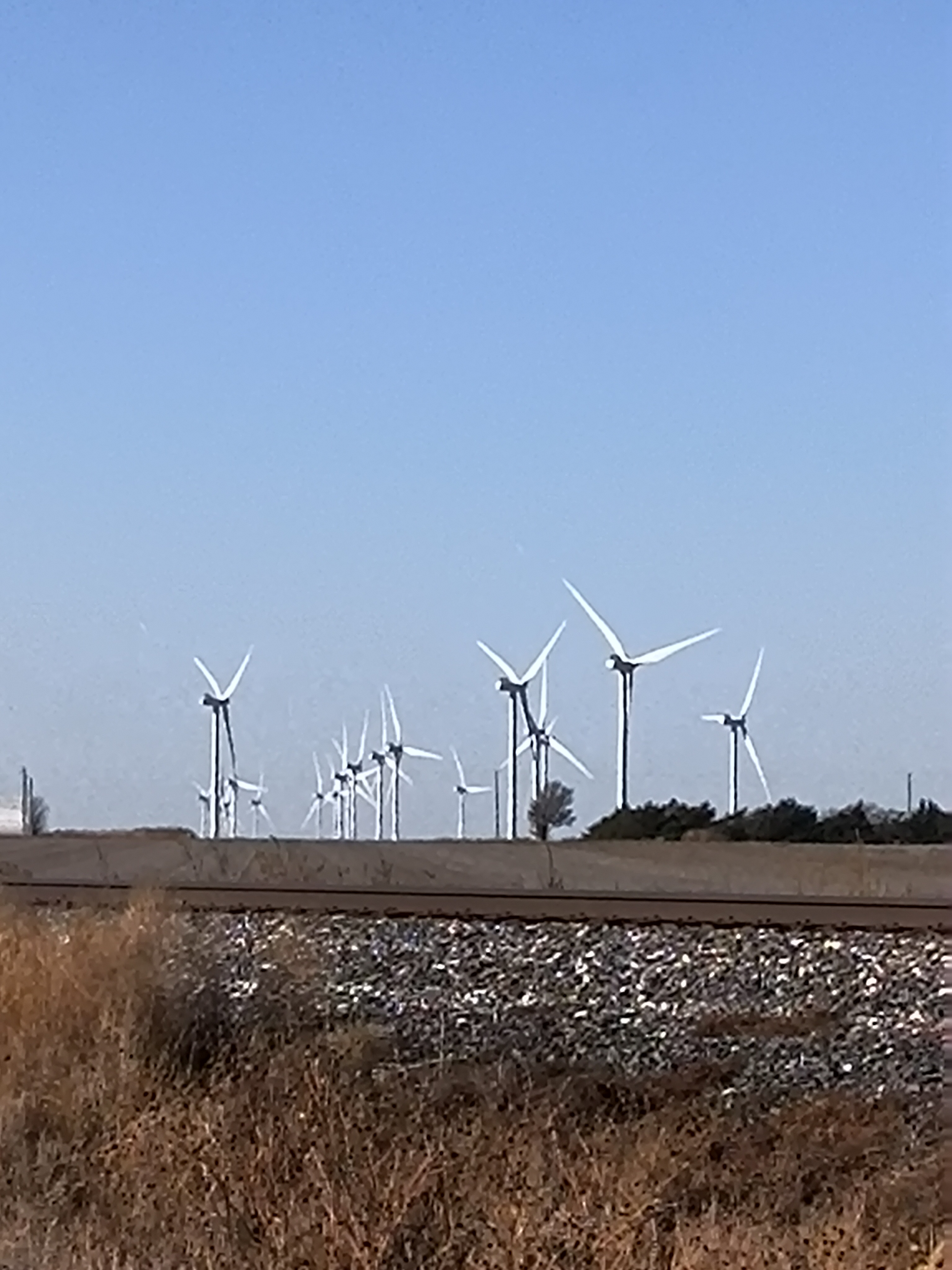 The SUV sped down the highway at a reasonable speed, past farms and wind turbines.