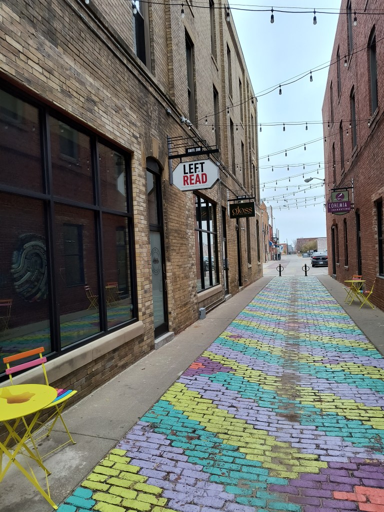 Wichita’s newest bookstore, “Left On Read” occupies a cool niche in a multicolored alley just East of Old Mill Tasty Shop at 612 E. Douglas, Suite 200.