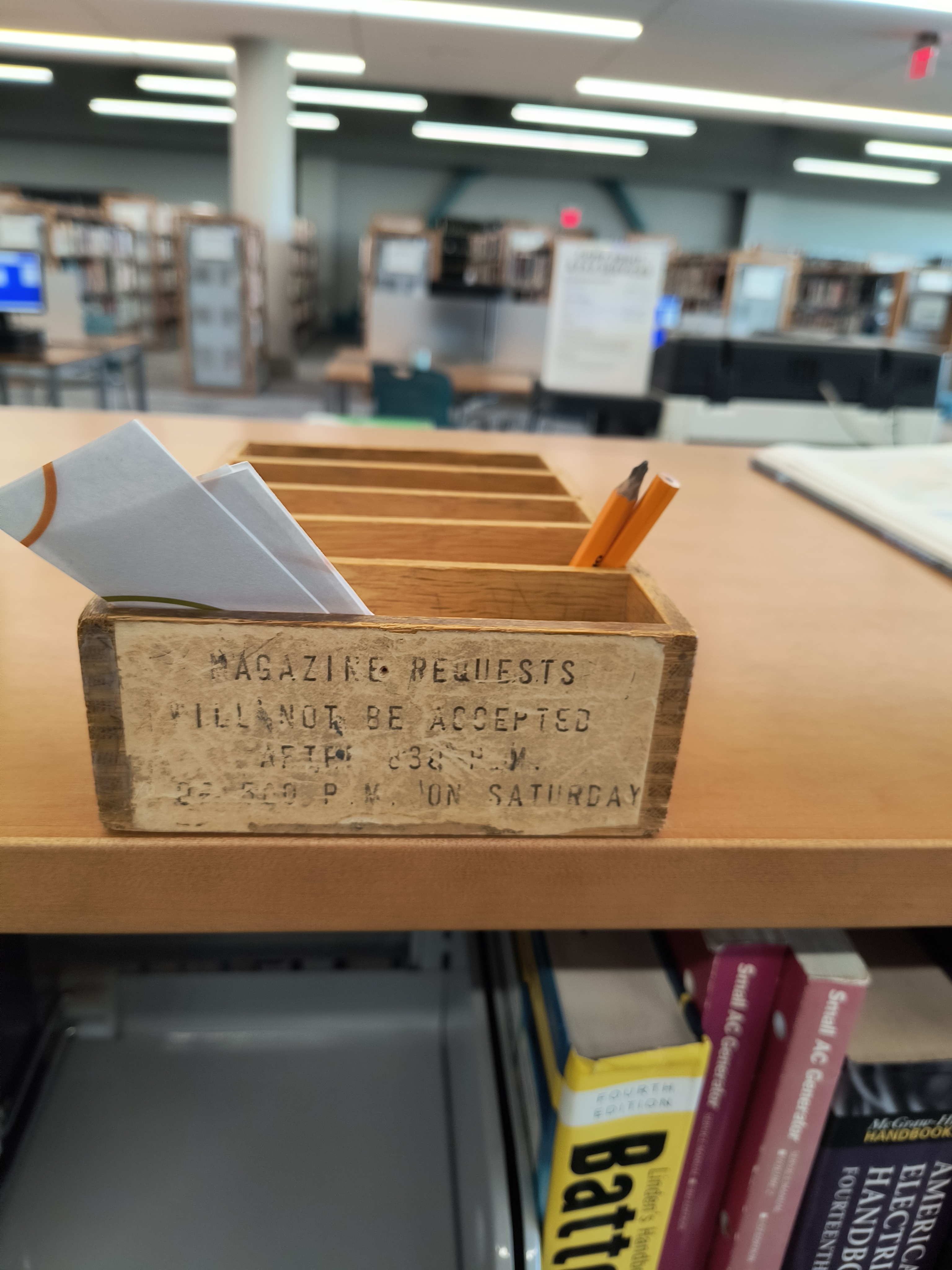 He wandered around the bookcases, picking out the little things that he remembered from the older library building that was now being used for storage. A couple of framed posters for the Grade School Summer Reading Club; a little wooden box full of pencils that used to be for call slips for things from the downstairs storage area; ceramic busts of two ancient writers that had been stuck high on shelves staring across each other in the old Reading Room, now in a glass case and the big, plastic globe in the doorway to the Reference and Genealogy Area with it’s white spot where generations of kids had rubbed where Kansas was.