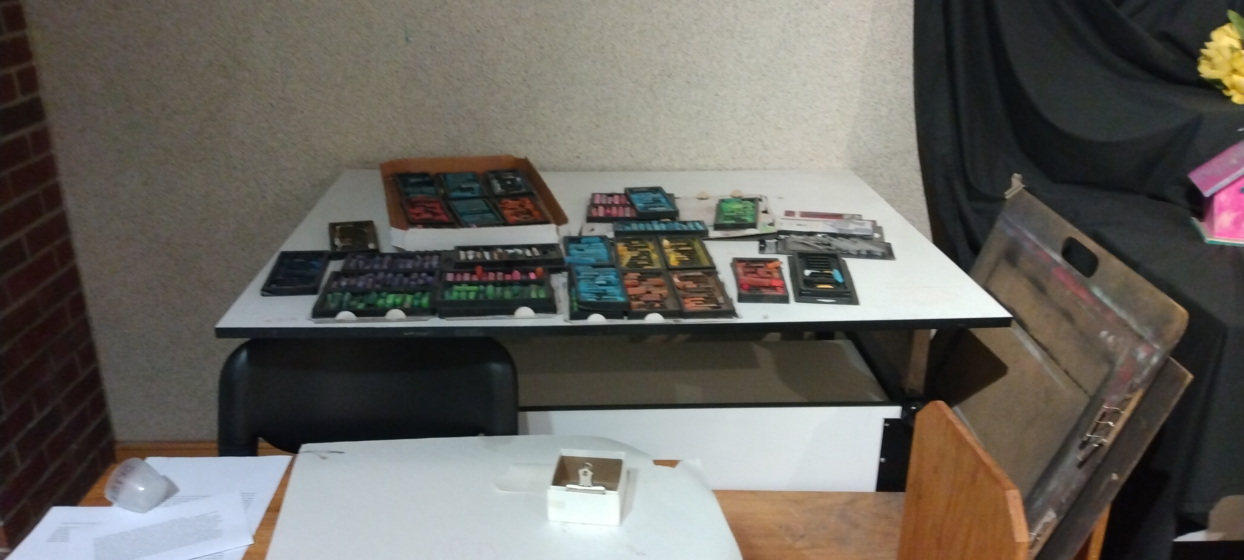 I was sitting at the easel staring at the blank canvas, tapping the tray of chalk with my fingers, regretting taking an art class. Especially since I was in the hallway outside the classroom at five thirty in the evening. One of my classmates was letting me use the easel that was out by the art that was being put on display.